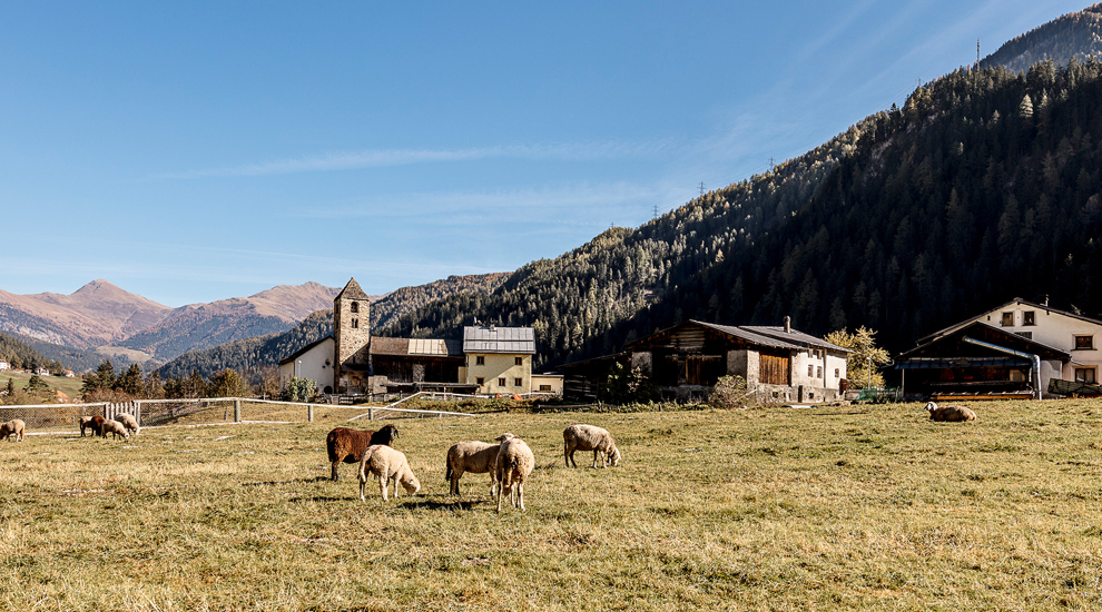 The post bus takes us to Ramosch, where we visit the second largest church in the canton of Graubünden. The journey continues to Vnà and Zuort, where we marvel at the wooden chapel designed by Wilhelm Mengelberg. In Sent, we visit the church with its neo-Gothic tower, which is visible from afar.